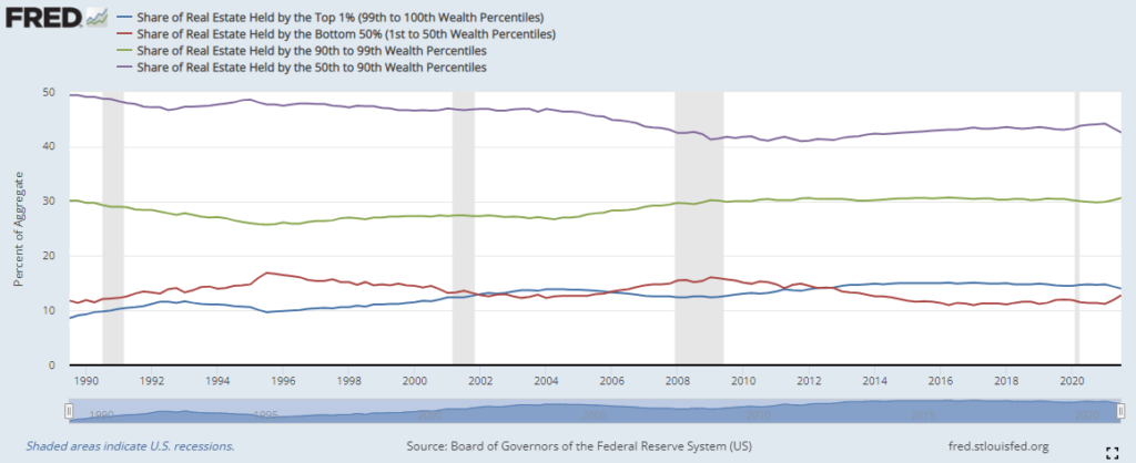 I was doing some analysis of the effects of quantitative easing and asset purchases by the FED. Ran across this data of historical ownership of real estate by wealth percentiles.
