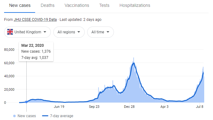 If you look at the cases of the Delta variant of Covid coming out of the UK it looks alarming and it appears we’re getting ready to get another wave of Covid to shut down the world. But not so fast.