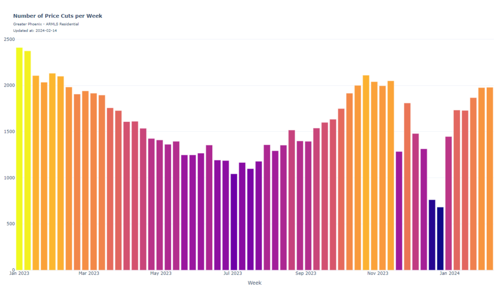 Price cuts should be reducing this time of year but they are not. They are going up showing sellers are more willing to negotiate.
